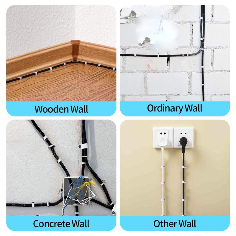 - [ Easy Install ] The installation steps of the wire clip are very simple and can be completed by one person. Insert the cable into the clip slot, hammer the nail into the wall, wood, plaster, brick, etc. With a long nail, it won’t easily fall.
