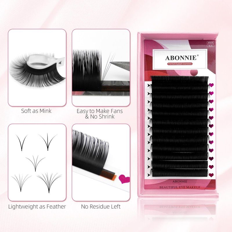 - 【Easily Fanning】ABONNIE lash extension is blossoms automatically in one second. Self fanning eyelash extensions is easier to use than single lashes.You can make the fans from 2D to Multi D easily without any professional skilled technology, even as a beginning lash artist.