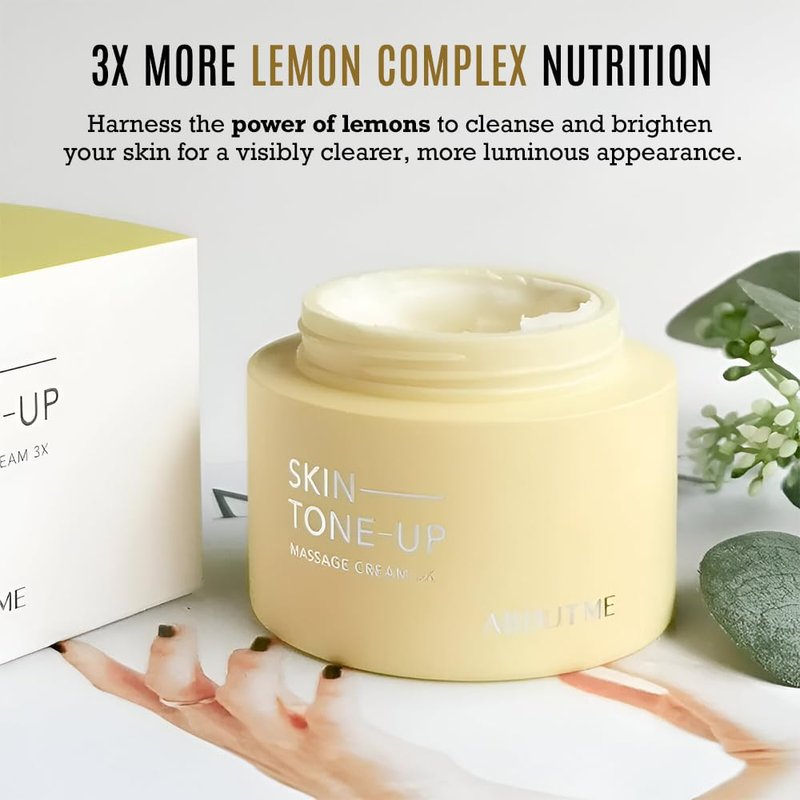 - PROFESSIONAL LOW-TEMPERATURE EXTRACTION - About Me Skin Tone Up Massage Cream 3X utilizes a professional low-temperature extraction process to obtain vital beauty ingredients from lemons. This advanced technique ensures that the cream is packed with the most potent, skin-loving nutrients for optimal results.