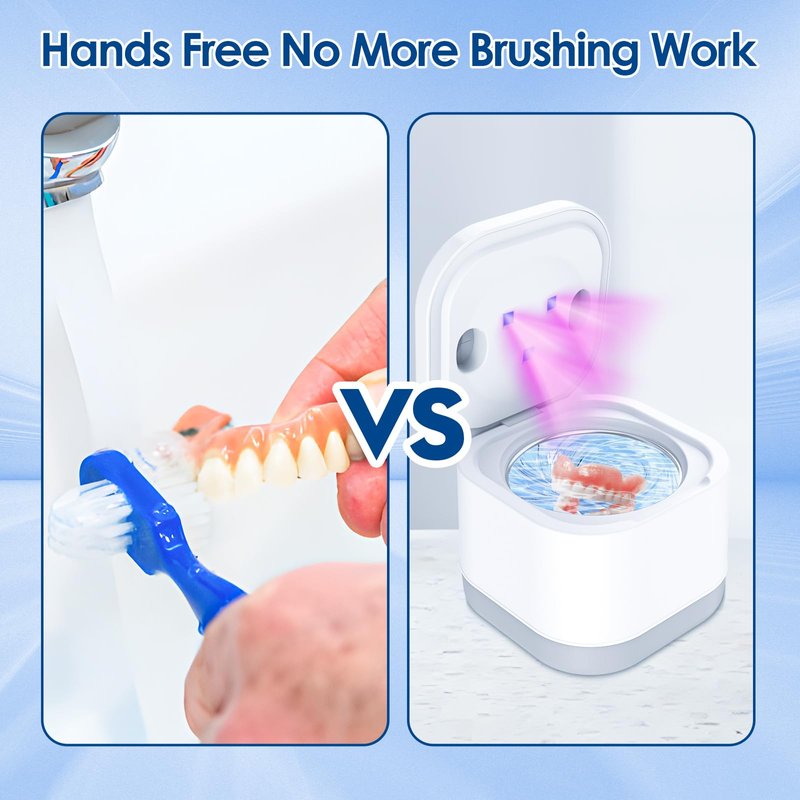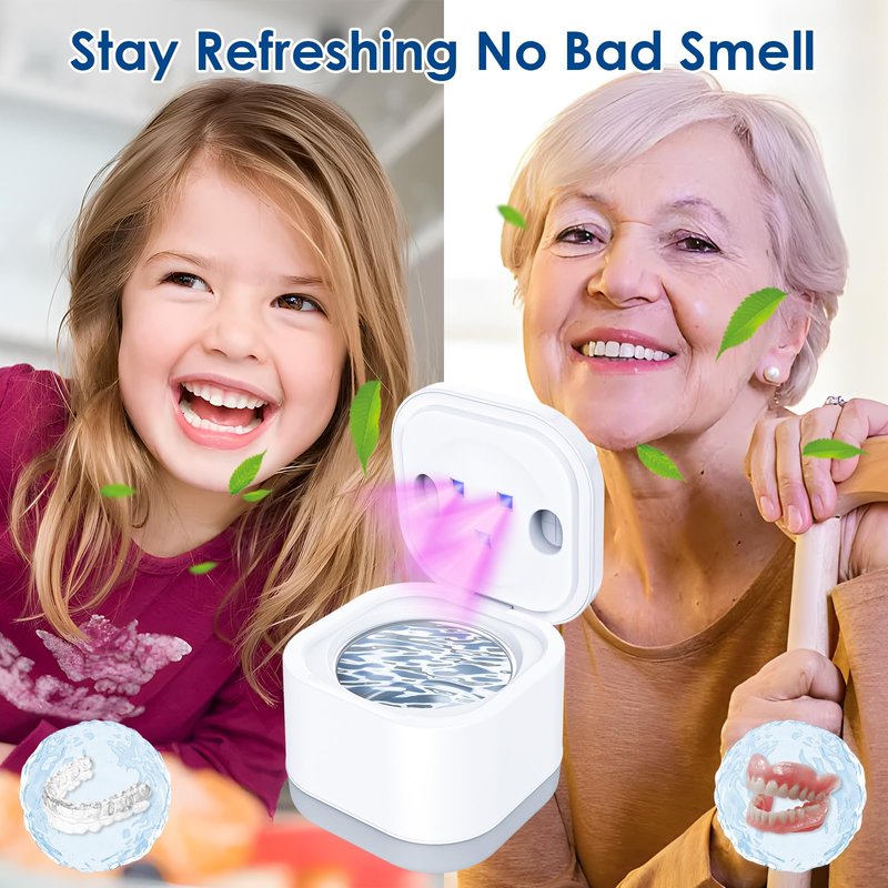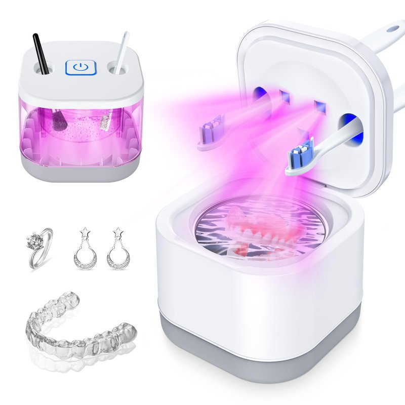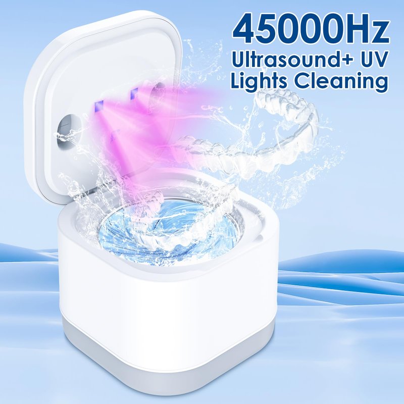 ABSKRYO Ultrasonic Retainer Cleaner with UV Light 45000Hz Ultrasonic Cleaner for Dentures Aligners Mouth Guards and Toothbrushes Ultrasonic Jewelry Cleaner Machine with Two Mode Settings and Timer