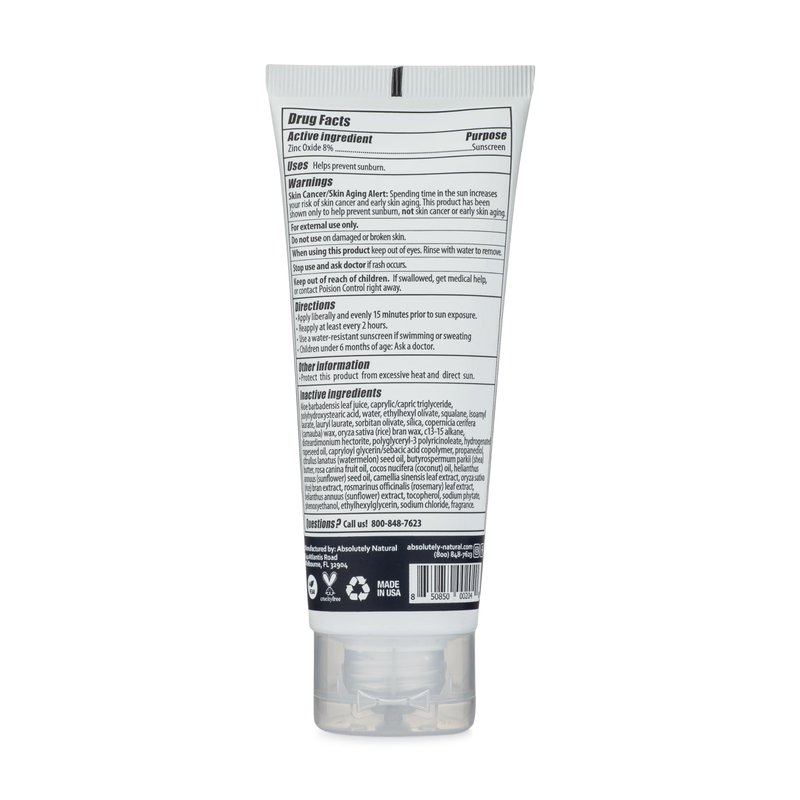 Absolutely Natural - SPF 8 Mineral Sunscreen - Water Resistant Moisturzing Lotion for Body & Face - Non-Nano Zinc Oxide, Vitamin E - 3 Oz