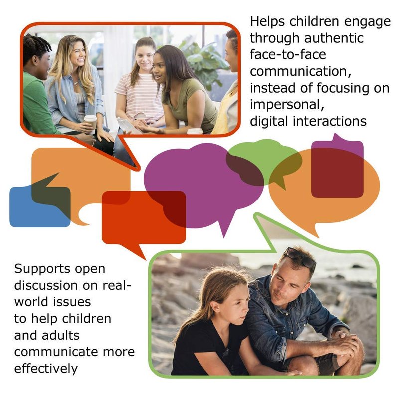 - COUNTERACTS ONLINE CHATTER: Helps children develop face-to-face, authentic communication that is being rapidly replaced by impersonal, digital interactions