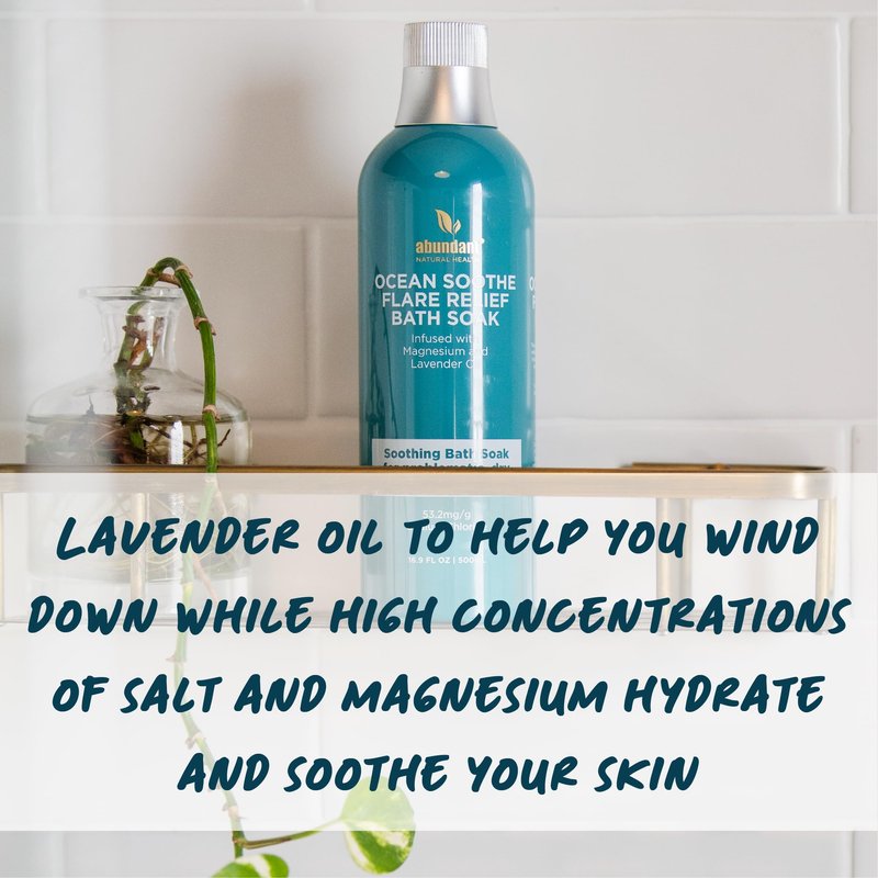 Abundant Natural Health Ocean Soothe Bath Soak ⎸ Lavender Oil with Magnesium Salt Concentration to Relieve Flare-Ups of Dry Flaky Skin ⎸ All Natural Moisturizer Soak, Hydrate Sensitive Skin (500mL)