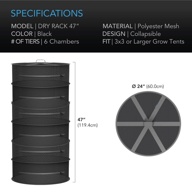- 6 Tiers | 24 in. Diameter | Fits 3x3 or Larger Grow Tents | Includes Hanging Hook & Carrying Bag