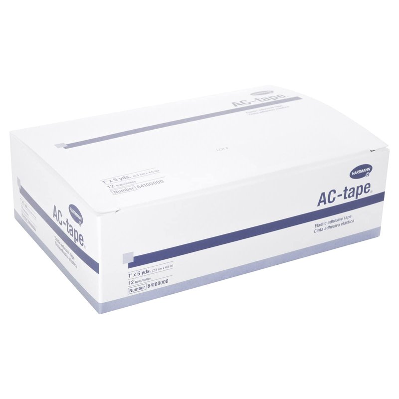 AC-tape elastic adhesive tape is woven with a high-twist cotton yarn and combined with a latex-free adhesive base. Provides excellent support, compression and fixation. It has an all-cotton elasticity allows it to conform to every contour. Ac-tapes elasticity does not restrict movement and is ideal for use during athletic activities. 1'' by 5 yds stretched, 12 rolls per box.