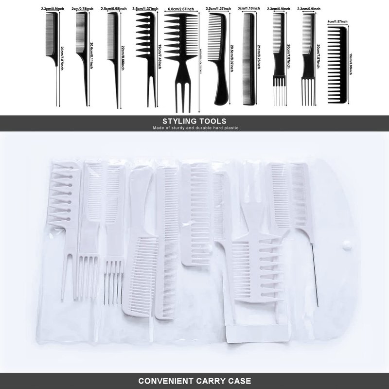 - Style: AC063 - 10 Hair Combs, 1 Vented Hair Brush