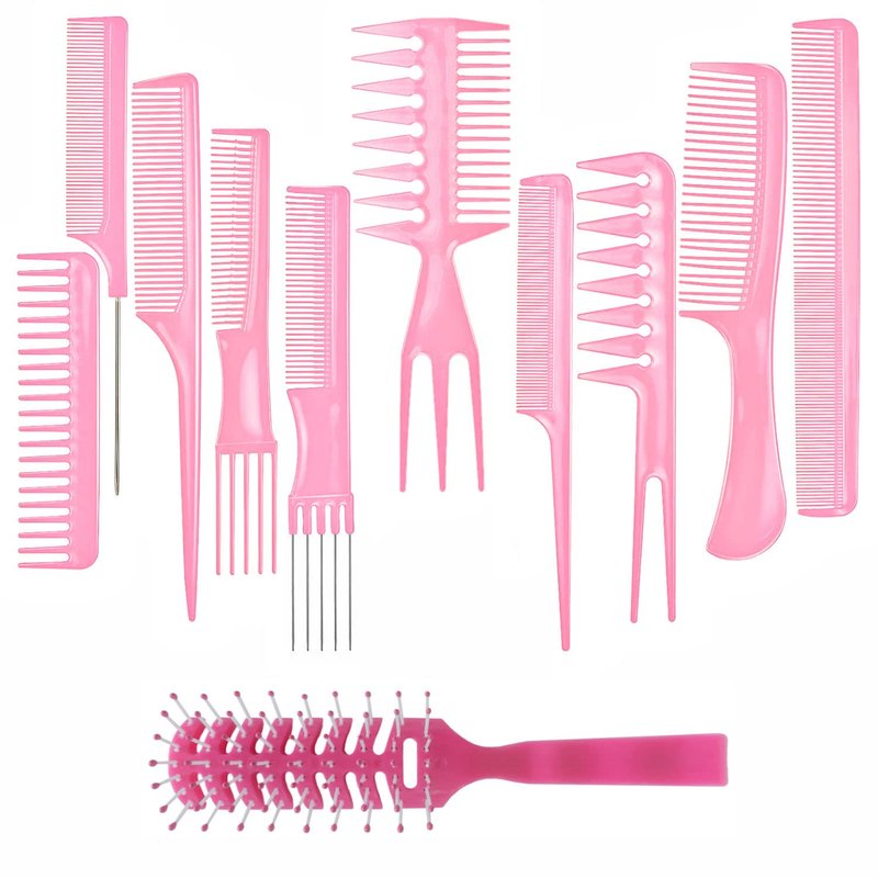 AC063 (10 Hair Combs, 1 Vented Hair Brush) - Natural Hair & Wig Accessory Bundle in AC-PINK