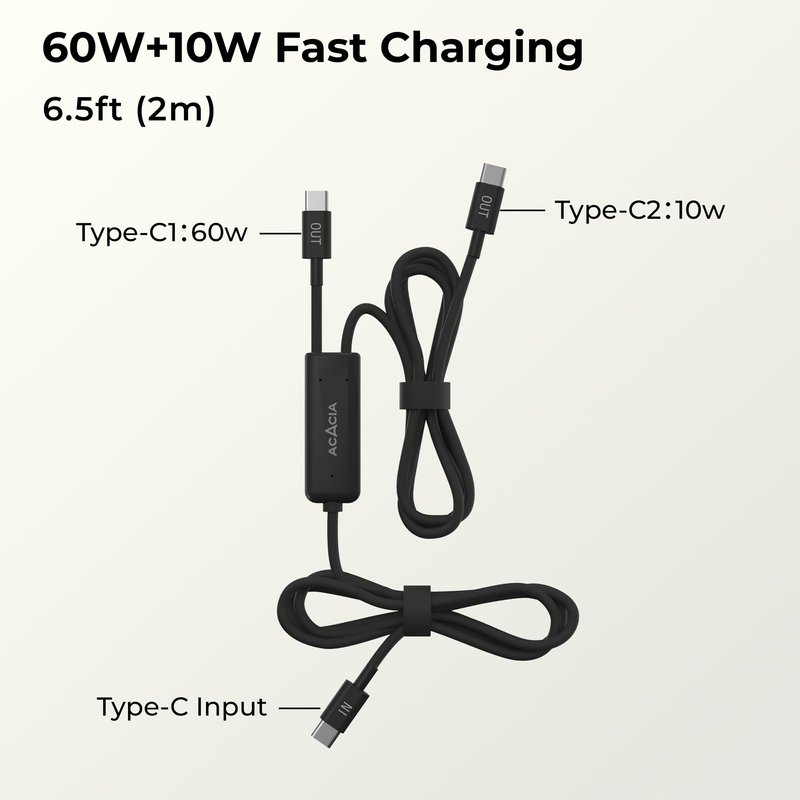 ACACIA USB C to USB C Cable, 2 in 1 USB C Cable Made of Ultra Soft Silicone, Lightning Cable 6.5ft, 60W C to C Type Fast Charging Cable, Tent Accessories 1 Pack