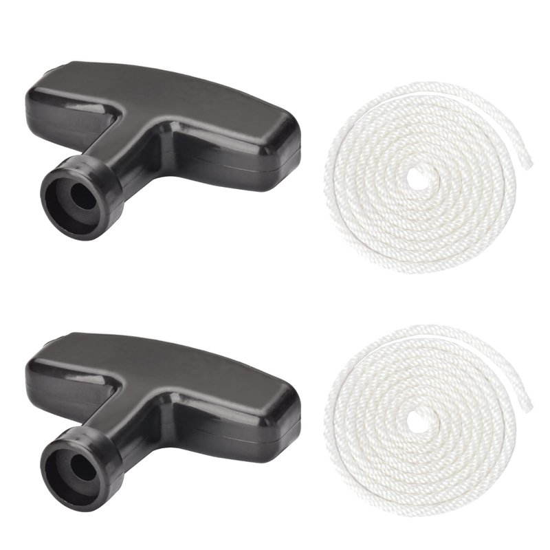 - Package Included: 2pcs recoil starter rope and 2pcs starter handle. Great starter handle and enough pull cord for daily use and replacement.