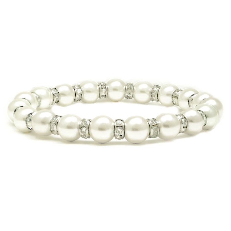 Accents Kingdom Women's Magnetic Bracelet White Tuchi Simulated Pearl Bracelet with Clear Crystal, 7.5"