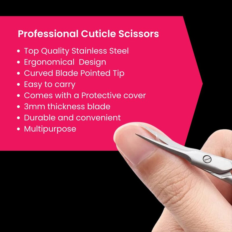 - Perfect Grooming Scissors – Made with 440 C Japanese stainless steel (Length : 4.1 Inches x Width : 2.4 Inches) Our cuticle scissors for nails and hair are 4.5 times stronger than other curved cuticle trimmer scissors to give you stronger, smoother, more precision cuts and trims.