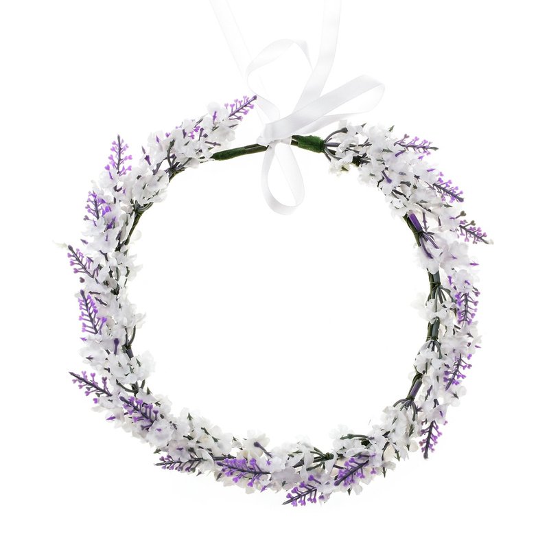 Accesyes Lavender Headband Bridal Woodland Garland Flower Hair Wreath Wedding Accessories BOHO Crown Beach Girls Headpiece (White)