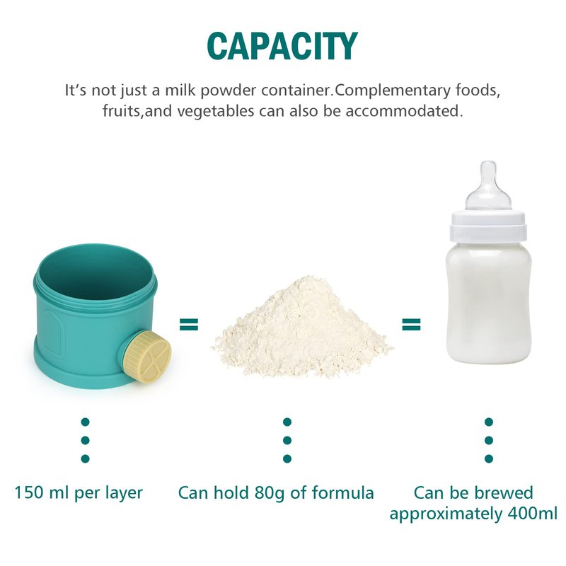- Capacity - 3 layers design, you can put quantity of milk powder to be taken at one time in each layer box, you can carry 3 times of milk powder for baby outdoor need, very convenient and practical.