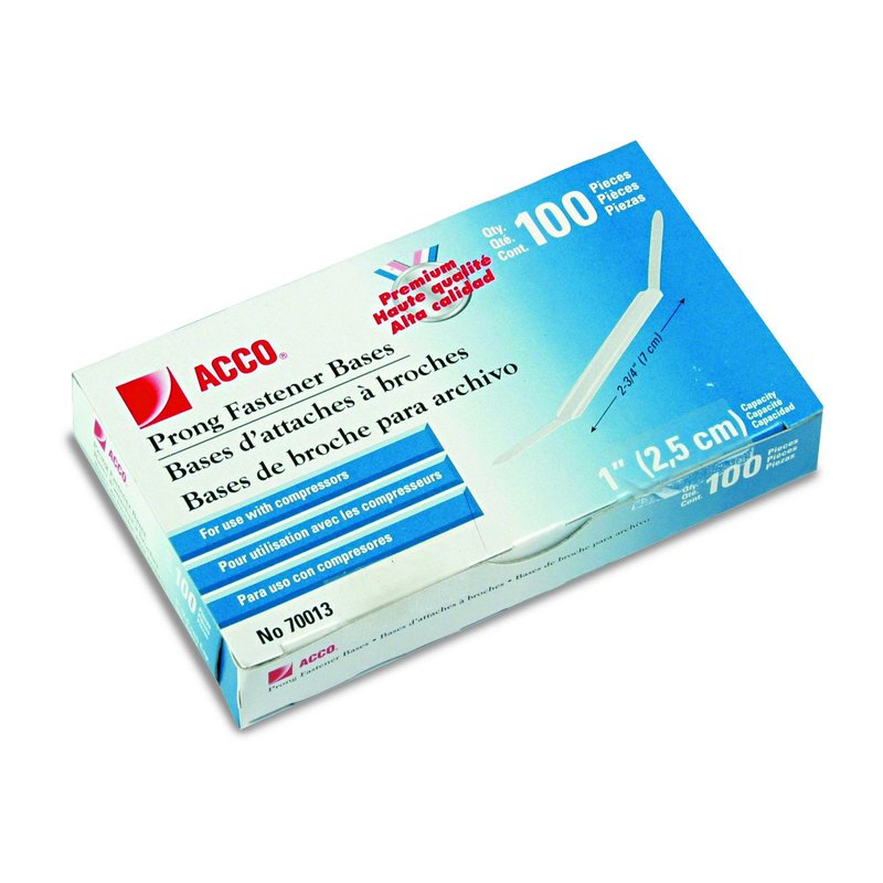 ACCO Brands Premium Prong Bases for Standard 2-Hole Punch, 1-Inch Capacity, 100 Pack (A7070013H) , Silver
