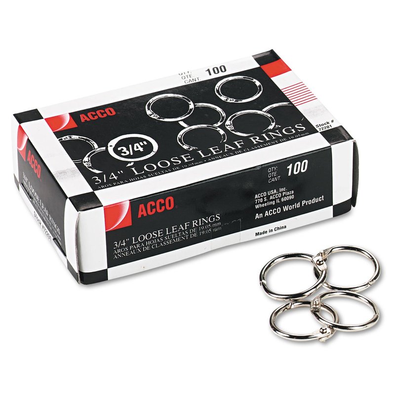ACCO Loose Leaf Binder Rings, 3/4", Silver, 100 Rings/Box (72201)