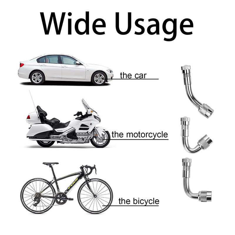 - Convenient to install: first screw the metal valve stem extender on your tire valve, then connect the hose to the tire inlet through the valve stem extension to inflate the tire, you can choose different angles according to your actual needs, the right angle bend allows easy access for the pump, the operation is simple, and convenient to use