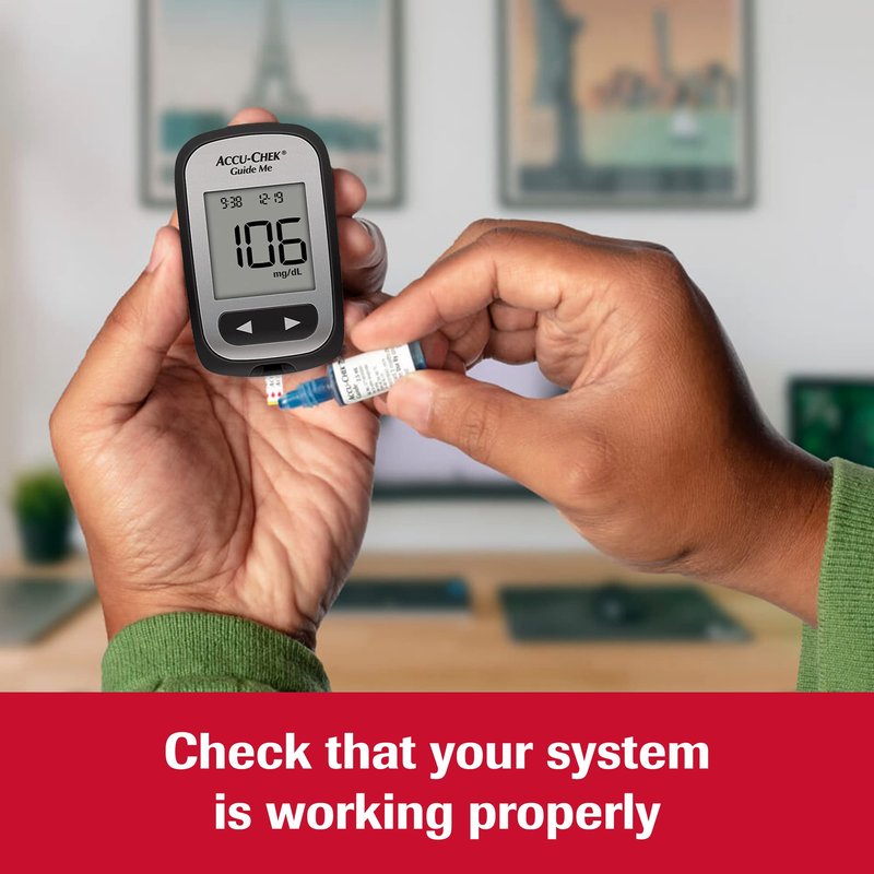 - Easily confirm the accuracy of results by performing a test using the Accu-Chek Guide glucose control solution