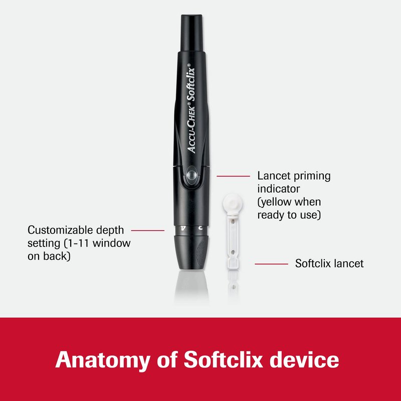 - Designed for one-handed use, the Softclix lancing device boasts precision-guided technology and 11 customizable depth settings for added convenience and a more comfortable testing experience