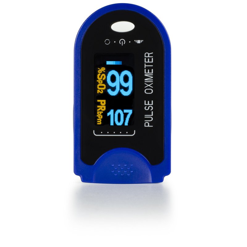 AccuMed Fingertip Pulse Oximeter, Sp02 Finger Blood Pulse Oxygen Monitor, w/Carrying case, Lanyard Silicon Case & Battery CMS-50D (Blue)
