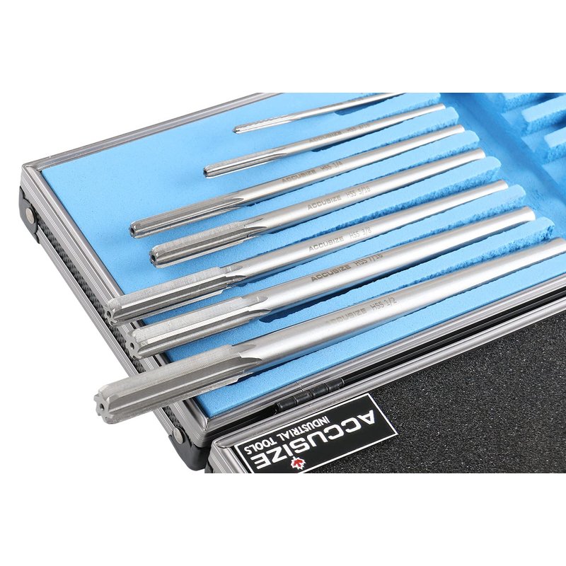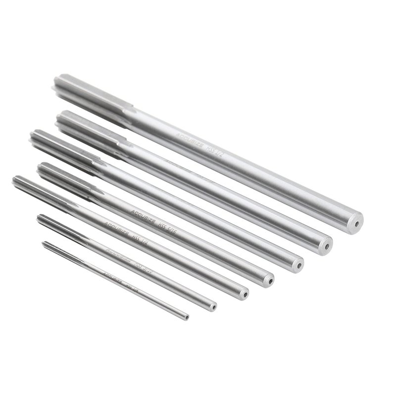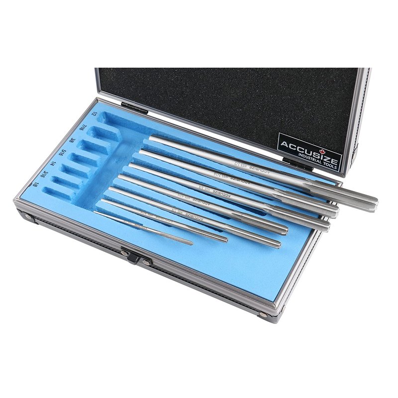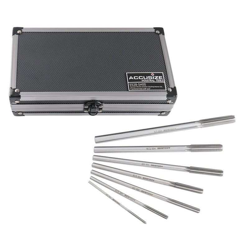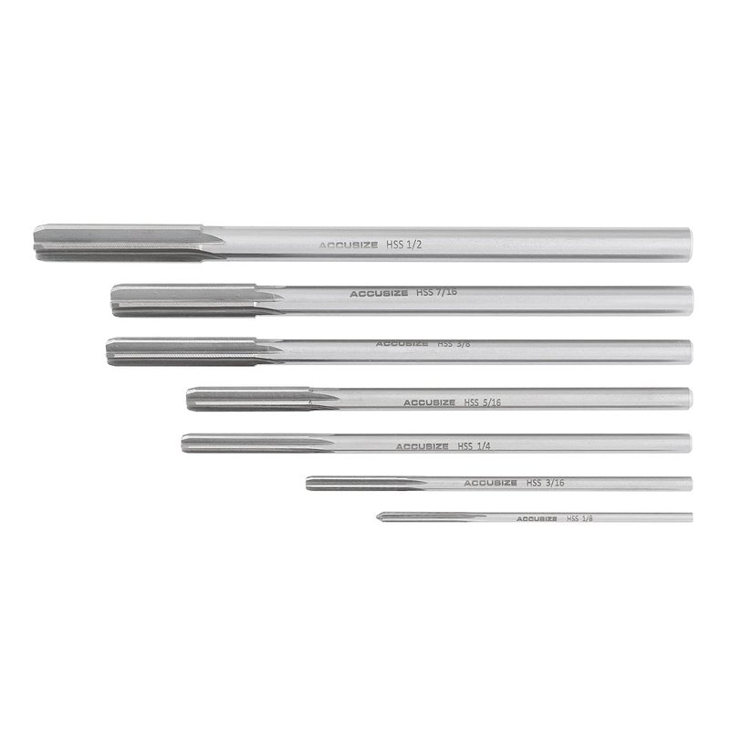 Accusize Industrial Tools Fractional Sizes 1/8" Thru 1/2" by 16th HSS M2 Premium Chucking Reamer Set, Right Hand Cut, 7pcs/Set, 5528-SH00