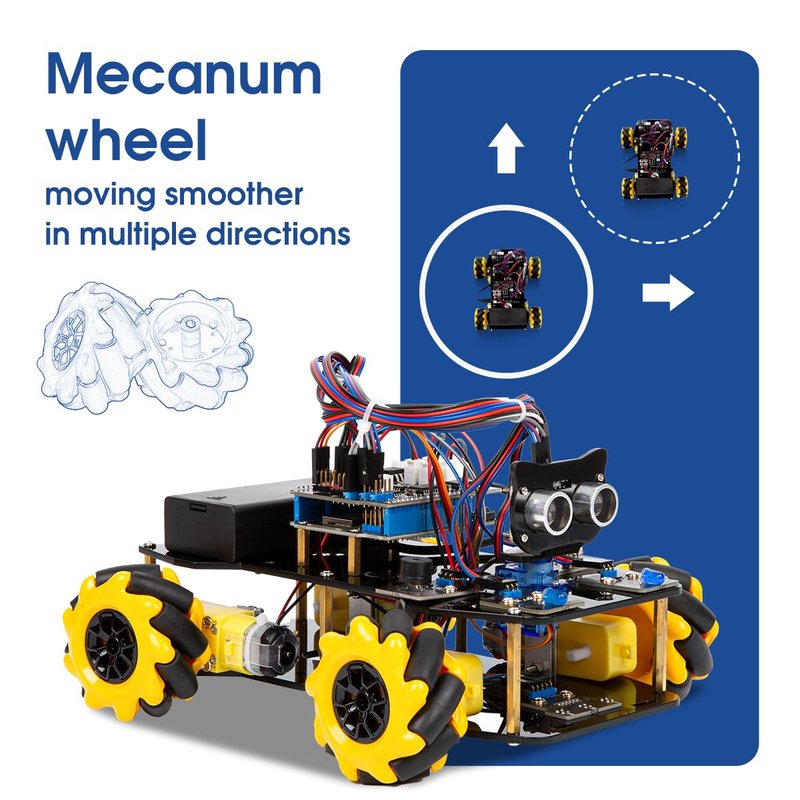 - Omni-directional Control: the cart is designed with four-drive wheel, which can easily and freely rotate and cope with various scenarios without any pressure. Whether it's tracking the line or avoiding obstacles, this car can do it easily.