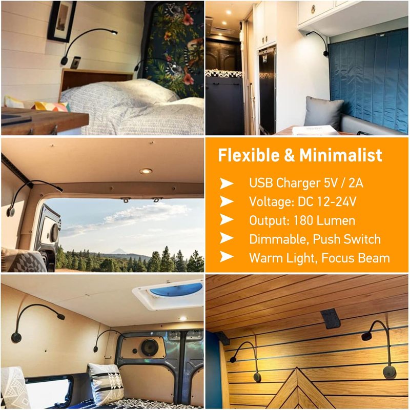 Versatile - It works act as reading lamp for bedside, seat, recliners or directional task light. Widely used in RV boat camper van trailer under cabinet, etc.