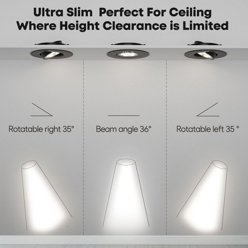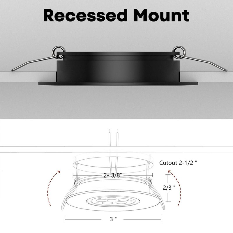 - Sleek & Compact Design: Requiring only a minimal 1-inch gap, vibration-proof recessed mount with spring clips, light fixture sits flush with ceiling, clean look after installation