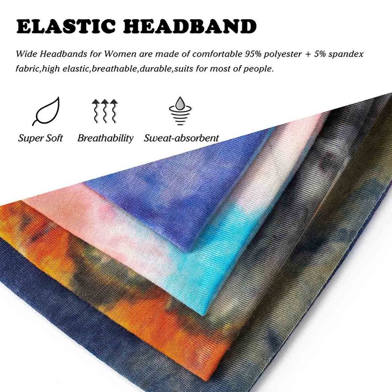 - Headbands for women are made of polyester and spandex blend, the fabric is soft and skin-friendly, suitable for delicate skin, the size is about 9.8*5.9 inches (25*15cm). #3 Tie Dye size is 9.8*7.1 inches (25*18cm).Boho hair bands width can completely cover the head, leopard headband can be folded for use, creating a more hairstyle.