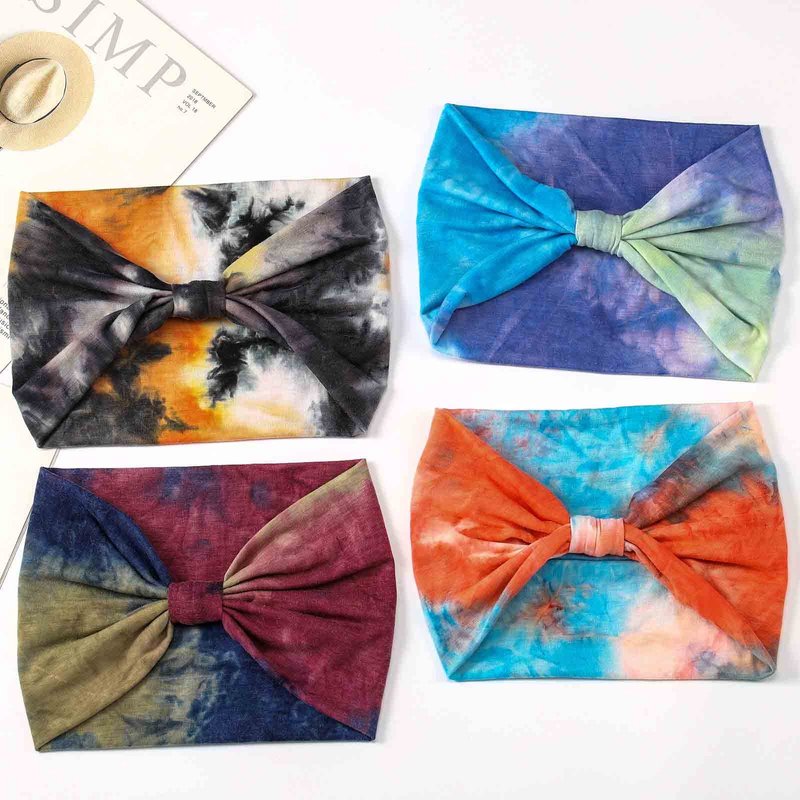 Acenail Boho Headbands Wide Head Bands Knotted Turban Headband Nonslip Elastic Head Band Tie Dye Hairbands Workout Hair Scarfs Yoga Sweatbands Bohemian Head Wraps for Women Girls 4Pcs(#3 Tie Dye)