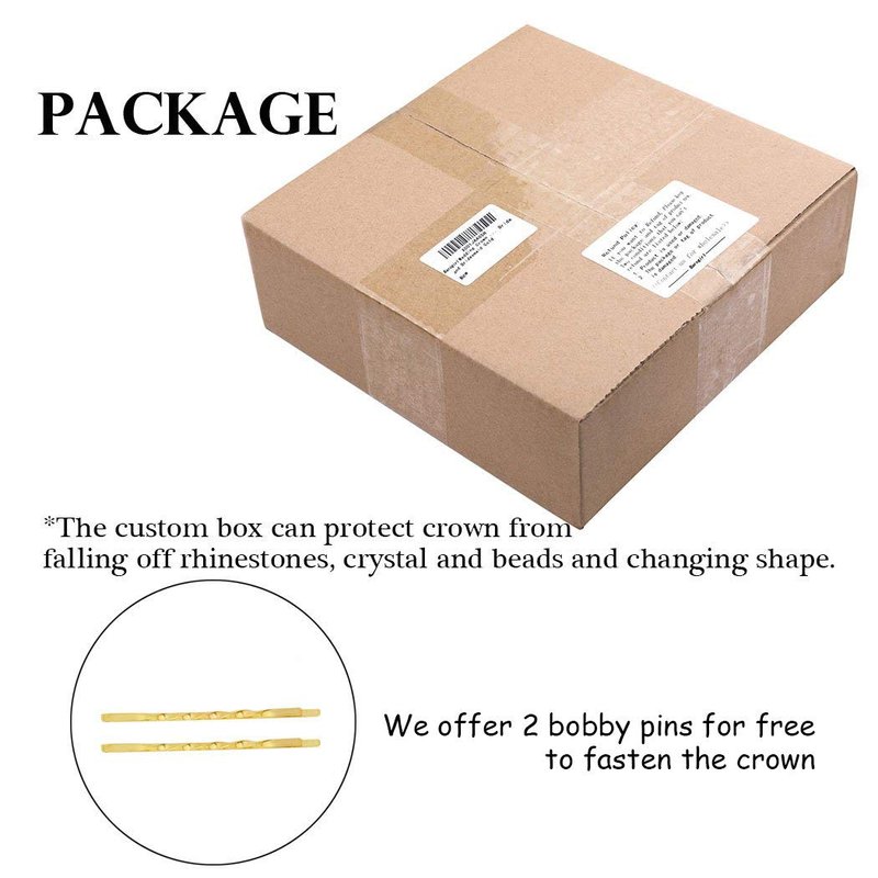 - Pricess crown size:Height 2.5 inches,5.5 inches in diameter.Packaged in exquisite carton gift box,2 free hair pins can be fastened by this accessories.
