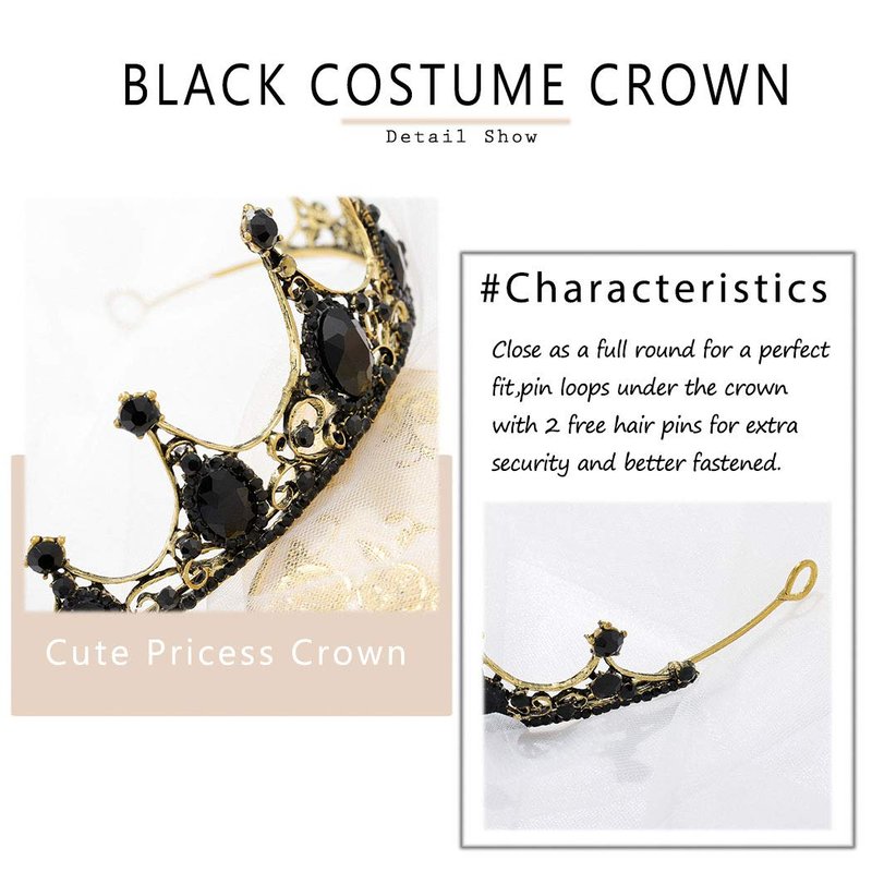 - Black queen crown is made of durable hard alloy and sparkly crystal rhinestone,vintage gold color and baroque style to add a bit of domineering and cool for women and girls.