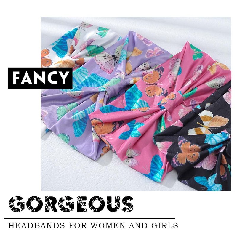 Aceorna Boho Butterfly Headbands Stretch Knotted Hairbands Floral Printed Hair Bands Elastic Turban Head Wraps Wide Head Bands for Women and Girls Pack of 4 (Butterfly A)