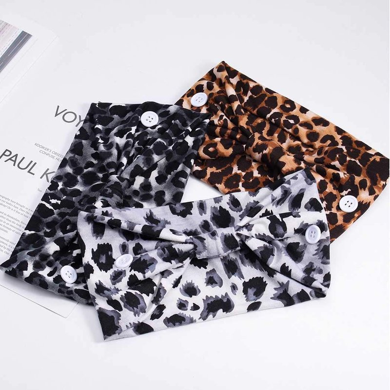 Aceorna Boho Button Headband Wide Knotted Hairbands Stretch Nurse Headbands Women Head Wraps Workout Ear Saver Hair Band Leopard Turban Headwear Yoga Hair Accessories for Women and Girls 3 Pcs (Set A)