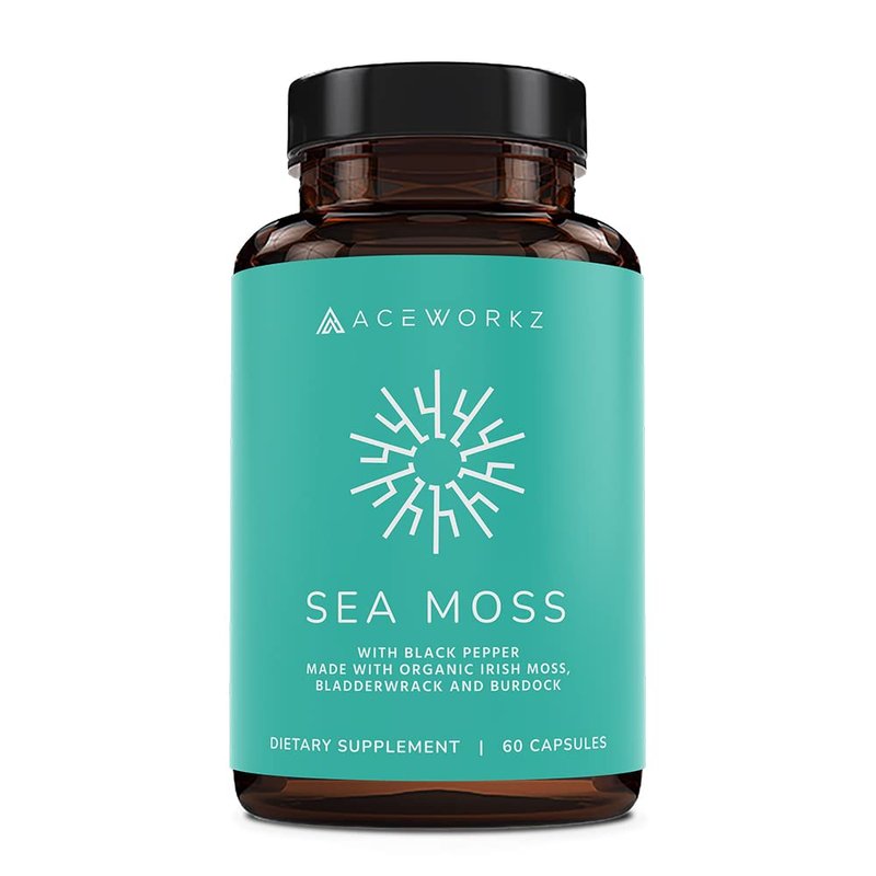 ACEWORKZ USDA Certified Organic Irish Sea Moss Capsules, Burdock Root & Bladderwrack with BioPerine® - Prebiotic Super Food - Thyroid and Gut Health - Healthy Skin & Anti-Aging (60 Capsules)