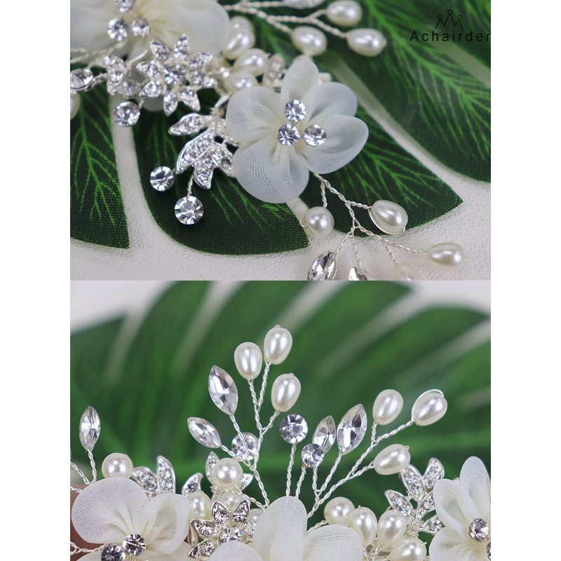 - Exquisite Handcraft:It is white mesh flowers with silver rhinestone centers with pearl beads and also you can shape the flowers however you need them.