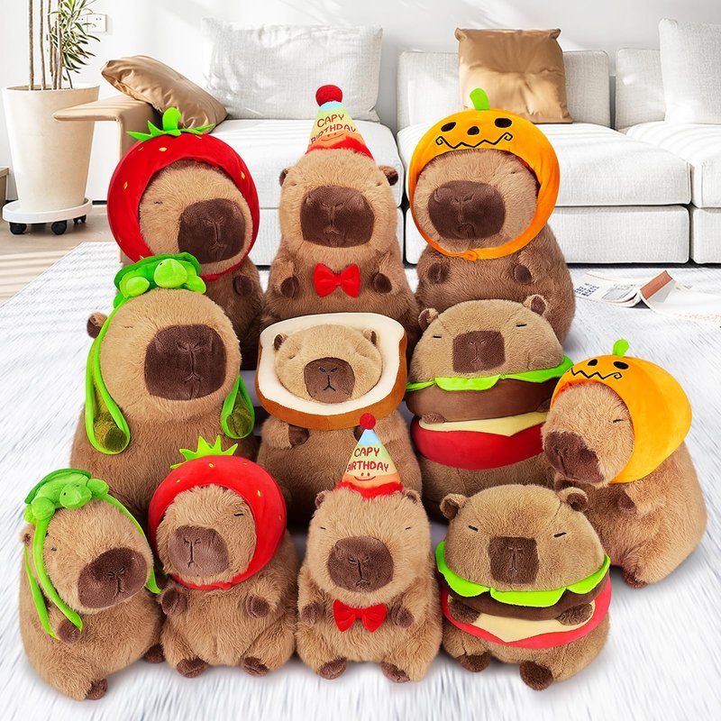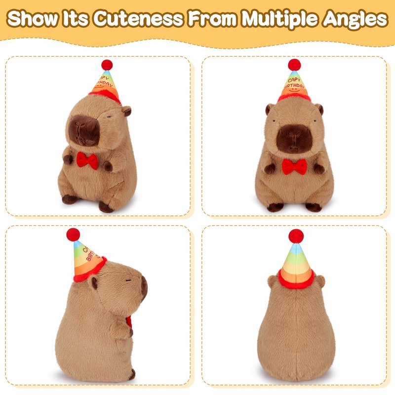 - 【Cute Capybara Stuffed Animals Design】This is a great design. A cute capybara wears a birthday hat. Our plush doll are made by imitating real animals. You can put it anywhere you like. This is a perfect decoration and companion. We believe that if you bring these capybara gifts home, it will catch the attention of all your family or friends.