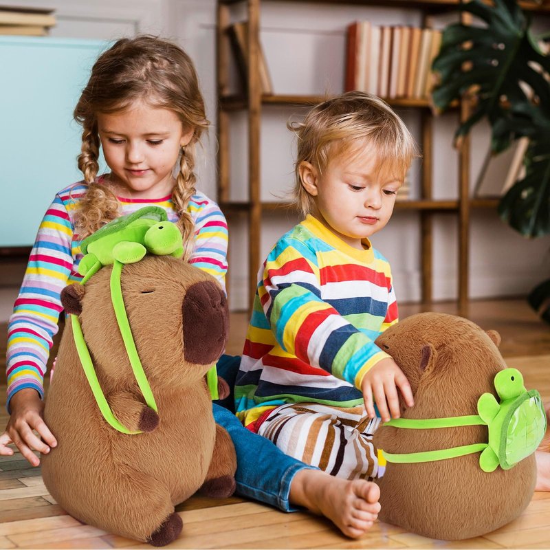 - 【Cute Capybara Stuffed Animals Design】This is a great design. A cute capybara carries a wearable turtle backpack that can be easily removed. Our plush doll are made by imitating real animals. You can put it anywhere you like. This is a perfect decoration and companion. We believe that if you bring these capybara gifts home, it will catch the attention of all your family or friends.