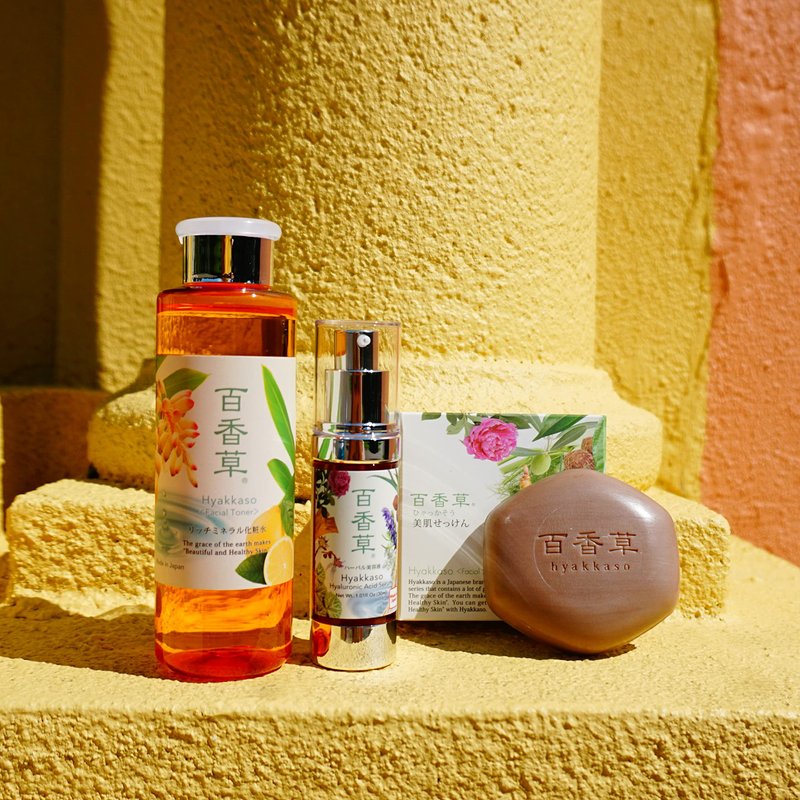 - 【TONER】is made with carefully selected natural Shell Ginger, Hyaluronic Acid, Lemon juice and hot spring water (ONSEN). Drawn from 1,600 meters underground in the Gifu prefecture, famous for its hot spring resorts, onsen water is rich in minerals. Hyakkaso Toner helps to improve the elasticity of skin and restores the damage caused by sunburn. Keeps skin hydrated thanks to the hyaluronic acid's properties. Shell Ginger extract has a nice astringent effect. For a natural and healthy skin.