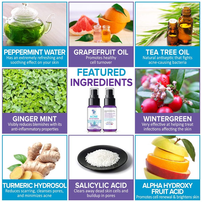 - UNIQUE, POWERFUL FORMULA: Contains Turmeric Hydrosol, Hawaiian Sea Extract, Tea Tree Oil, Wintergreen, Salicylic Acid, and more. We’ve blended some of the finest acne-busting ingredients to give your skin a royal skincare treatment. Salicylic Acid is known to reduce acne by unclogging pores and dissolving dead skin cells, while Turmeric is known to reduce inflammation and pimple scars.