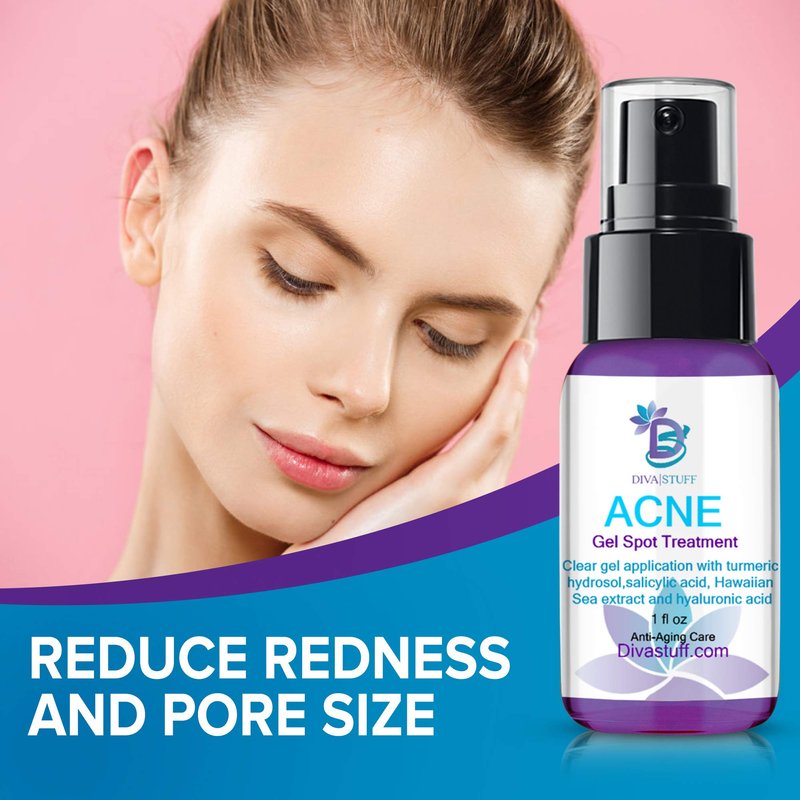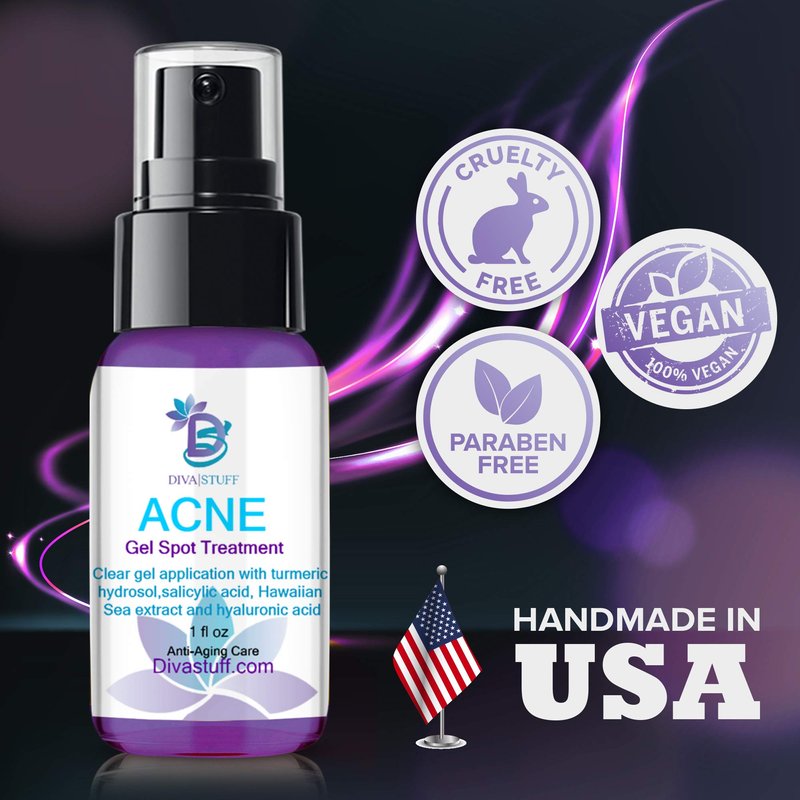 Acne Gel Spot Treatment By Diva Stuff,With Salicylic Acid, Hawaiian Sea Extract,Lactic Acid, Tea Tree, Turmeric Hydrosol, Hyaluronic Acid and More, 1oz