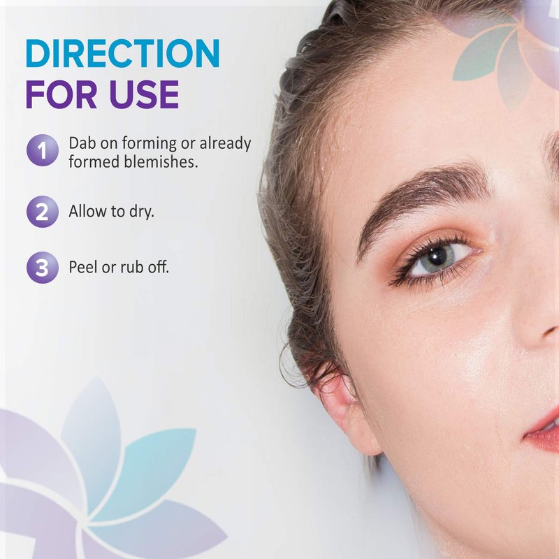 Dab on forming or already formed blemishes and allow to dry. Peel or rub off.