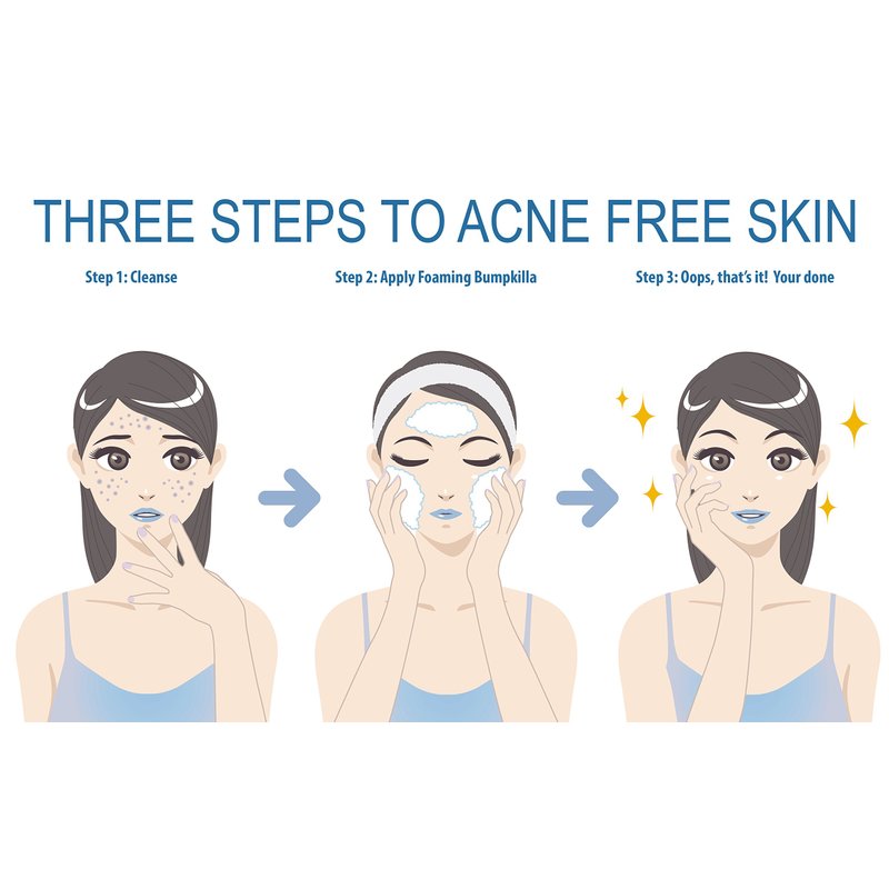 - INSTRUCTIONS – Wash face, then using the foamer pump, do 2 to 3 squirts into your hands. The aqueous liquid solution will foam temporarily (10 to 15 seconds), quickly apply foam to treatment area before it reverts back to liquid, let dry naturally. Do not drink. Avoid eye contact. If eye contact occurs, wash hands with soap, then flush eye area thoroughly with clean cool tap water. To avoid inadvertent eye contact and transfer, please wash hands thoroughly with soap after applying BumpKilla.