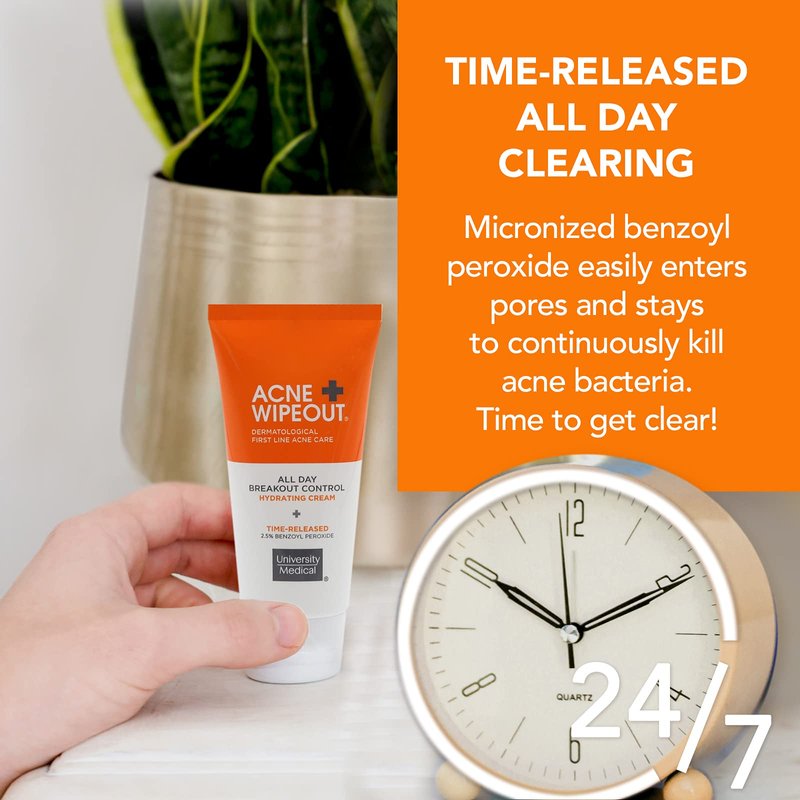 Fight Acne Like a Dermatologist with the Acne Wipeout Clinical Acne System. This 3-piece acne treatment kit starts clearing acne fast with dermatologist recommended combination therapy; benzoyl peroxide combined with a topical retinol, specially formulated to work perfectly together day and night. Step one (AM and PM) is the Clear Pore Oil-Free Cleanser with Jojoba Gel to gently exfoliate, cleanse and control shine for acne-prone skin. Follow (AM) with All Day Breakout Control, a time-released, micronized benzoyl peroxide treatment to continuously kill acne-causing bacteria. Use Retinol Plus Night Cream (PM), a natural alternative to Adapalene, to smooth skin and unclog pores all night while you sleep. Two steps in the morning and two steps at night provide non-stop treatment and prevention against acne breakouts, whiteheads and blackheads. The Acne Wipeout Clinical Acne System acne treatment kit can even help reduce severe acne (check with your dermatologist). For normal, oily and combination skin. Non-comedogenic, fragrance-free, paraben-free and sulfate-free formulas.