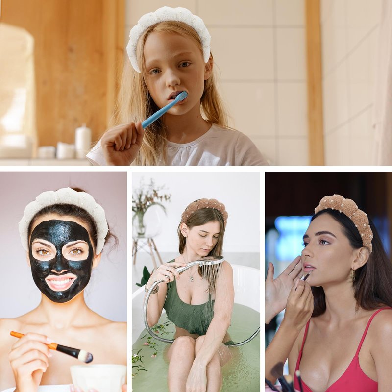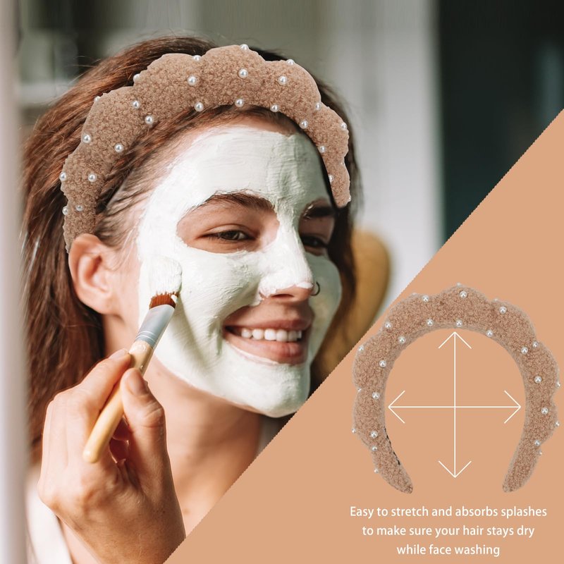 - Soft Material: These skin care headbands are made of premium lamb wool and sponge, and adorable clouds shape design inlayed with cute pearls. The edges of the bubble headbands are soft, and won't hurt the back of your ears.