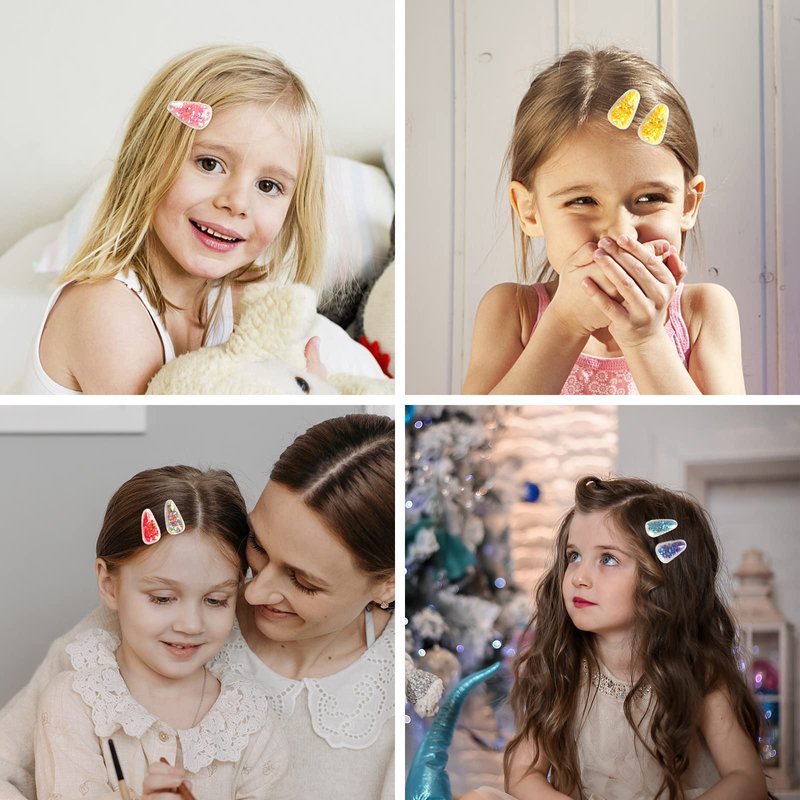 ACO-UINT 28 Pack Small Hair Clips for Girls, Sparkly Hair Clips with Glitter Inside Cute Hair Barrettes, Snap Hair Clips for Kids Toddler Women Girls Hair Accessories