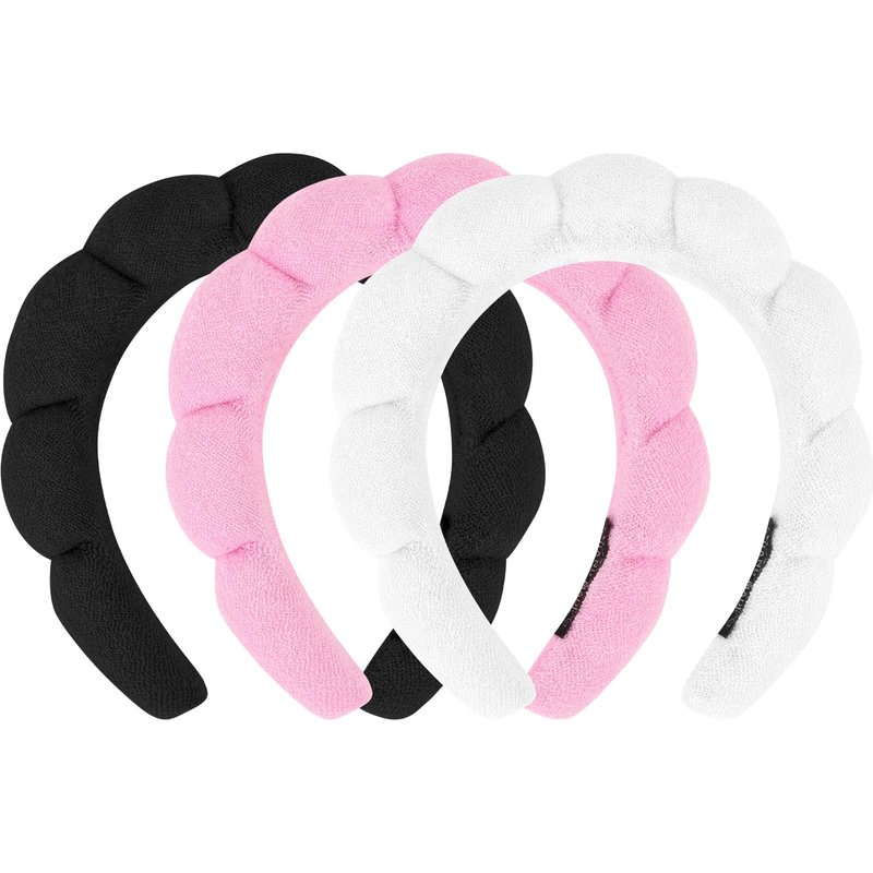 ACO-UINT 3 Pack Spa Headbands for Washing Face, Skincare Headbands Makeup Headband Sponge Face Wash Headband, Terry Cloth Headbands Puffy Hair Band for Washing Face