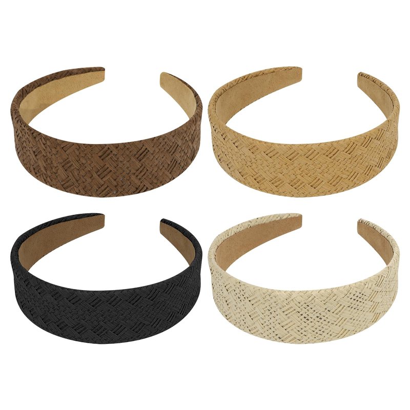 ACO-UINT 4 Pack Straw Headbands for Women, Plain Headbands Wide Headbands with Soft Fabric Fashion Head Bands for Women’s Hair, Thick Headbands for Girls Hair Accessories for Women Girls