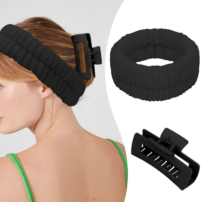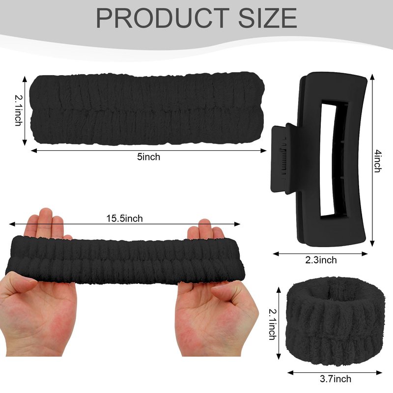 - Soft Material: The hair band for washing face and spa wristbands are made of premium coral fleece, 1pcs large claw clip is made of durable PC material which is durable to use.