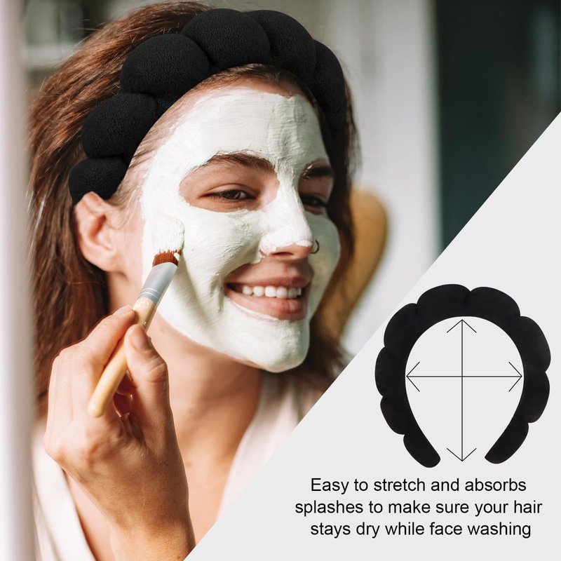 - Soft Material: The puffy spa headband is made of premium terry cloth fabric and sponge with adorable clouds shape design. The 1pcs skin care headbands and 4pcs spa wristbands are made of soft microfiber, super comfortable to wear.
