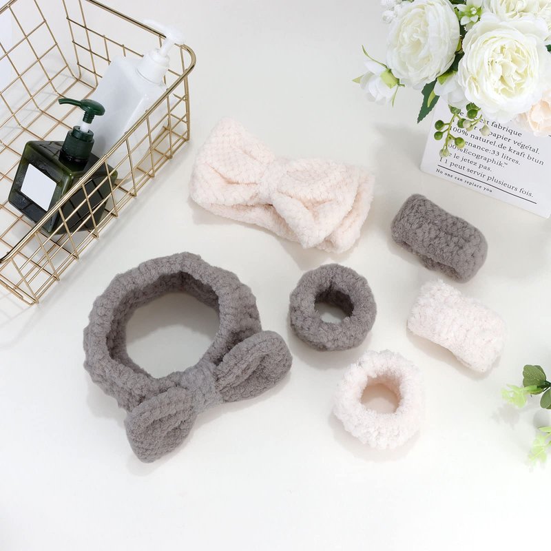 ACO-UINT 6Pcs Spa Headbands and Wrist Washband Set, Headband for Washing Face Towel Wristbands Make Up Headbands, Microfiber Hair Band Skincare Headbands Absorbent Wrist Sweatband for Women